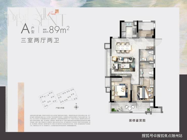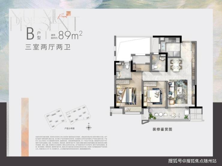 项目主力户型为建面约89㎡三房两卫,层高约3米,毛坯交付,70年产权。户型设计亮点十足:三开间朝南+双联阳台,餐客一体连接景观阳台;主卧独立卫浴配阳光飘窗,动静分离设计,兼顾私密性与实用性。全装修采用一线品牌(如科勒卫浴、老板厨电),细节处尽显品质——卫生间干湿分离+防滑地砖,厨房预留凉霸与洗衣机上下水,连阳台都做了防紫外线玻璃。