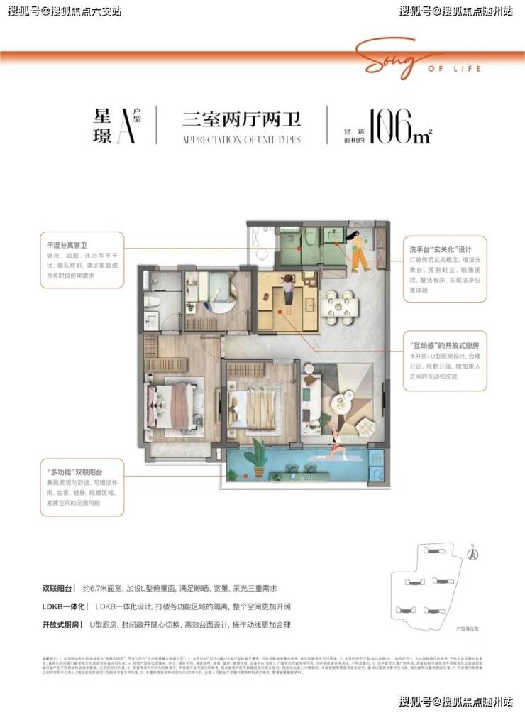 约106㎡户型点评:双联阳台约6.7米面宽,加设L型俯景面,满足晾晒、赏景、采光三重需求,LDKB一体化设计,打破各功能区域的隔离,整个空间更加开阔,开放式厨房 U型厨房,封闭敞开随心切换,高效台面设计,操作动线更加合理杭州萧山区◆市区小高层◆崇璟和颂府🔻售楼热线:☎ 400 832 8823「售楼处」☎〢网上售楼中心〢🔻