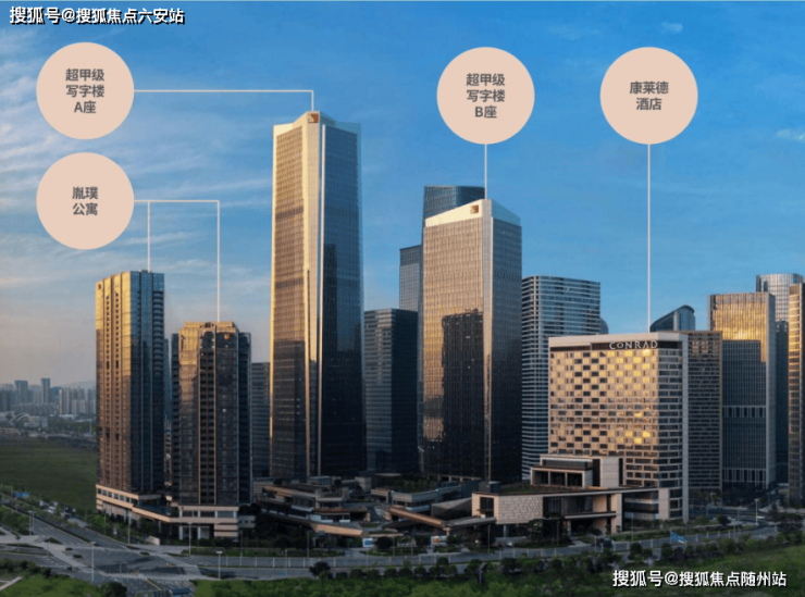 【建筑规划】:A幢为写字楼;B、C幢为在售大平层、D幢单体商业