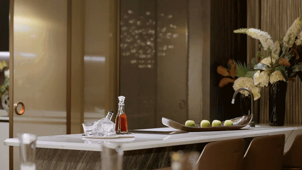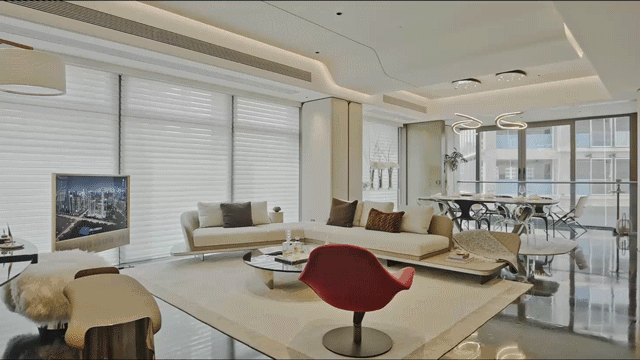 同时打破固有模块化布局,将客厅、餐厅、书房、阳台整体打造成联通又可随意调整的百变空间,让都市新贵无拘的想法能够一一实现。