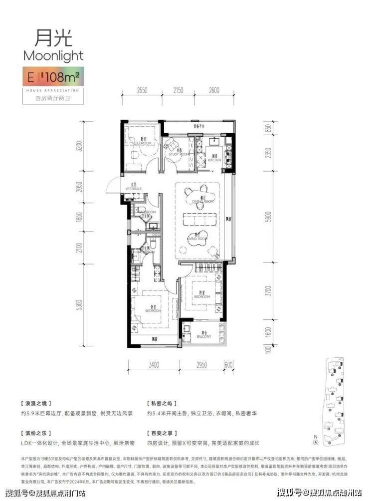 若三代同堂或二胎家庭,112㎡四房边套会是一个更经济实惠的选择。整体布局是在98㎡基础上增加了一个北向次卧,在保证各自有独立居住空间的同时还能保留书房这个“现代刚需”。由内到外都给出了绝对的诚意。