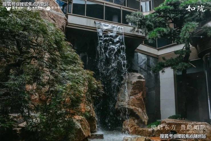 立体水景系统:双飞瀑设计结合缓急流速控制,兼顾视觉冲击与静谧体验。