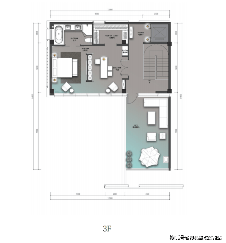 三层端厅式大空间,只打造尊贵一室,利用近乎一整层的面积来满足供主人休憩+工作结合的心灵栖息之地,南向270°大采光面+超广角视野,赏一年四季风景如画。独立步入式衣帽间及带浴缸大卫生间的点缀,更加彰显仪式感、开阔感、功能性、舒适性、私密性强。