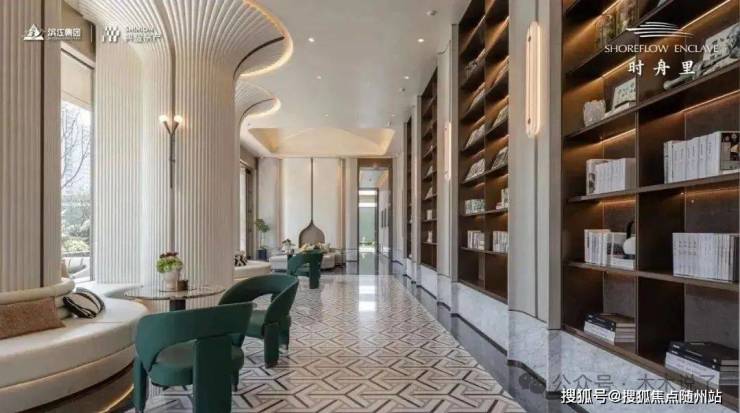 其中下沉水院作为关键归家场景之一,以水为引,叠瀑飞流,对景廊架,还有风景连廊,搭配波光粼粼的镜面水景和绿植点缀。架空层空间打造成书吧、私宴接待厅等友邻生活空间等。
