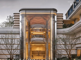 月望庐一脉相承,建筑设计由绿城六和GLA执笔,以石材、LOW-E玻璃、金属铝板为主材,相较于咏溪云庐的冷调蓝灰,它的石材色调略浅一度,更显温润澄明。