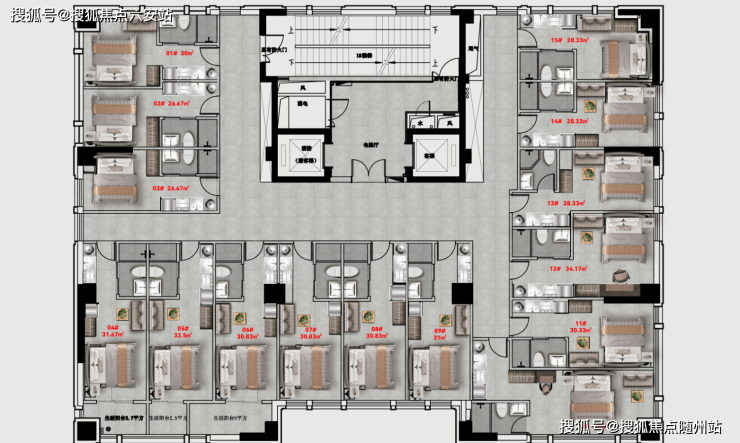 项目主打建面约27-40㎡小户型,通过精细化设计实现空间高效利用。27㎡户型囊括独立卫浴、开放式厨房及休憩区,40㎡户型可拓展为双功能房间,满足单身青年、陪读家庭等群体的过渡性居住需求。