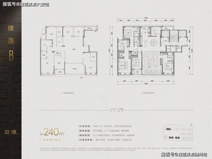 尤为值得一提的是主打户型——约240㎡南厅户型。该户型分布于12-16层的低密楼栋,享有接近一梯一户的尊贵体验,综合得房率约达90%以上。