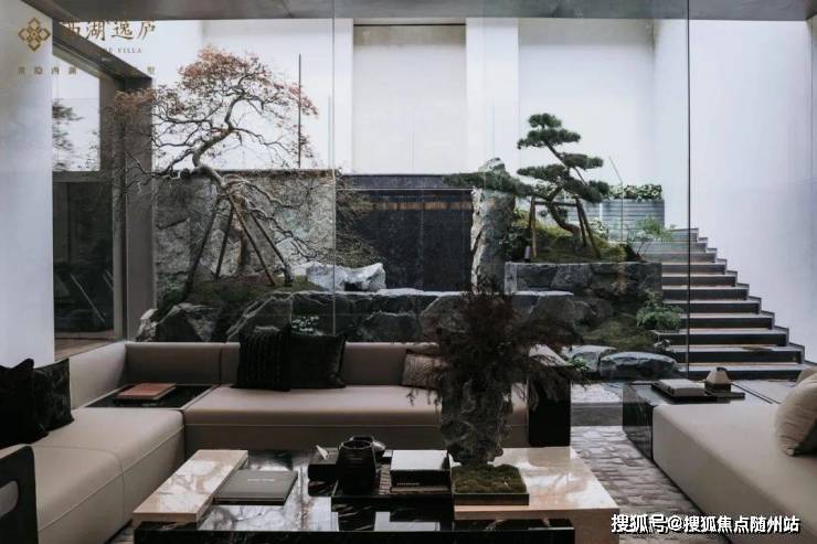 在丰沛的功能区之上,西湖逸庐还特意增加了一处下沉式庭院。绿植、叠石和流水巧妙组合,一座精巧的山水园林就此诞生。无论是娱乐健身还是招待亲朋,这幅山水画都是最佳的视野点缀。