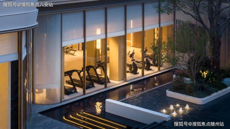 深入社区内部,一个约1200平方米的下沉式庭院豁然开朗。与传统楼盘挖个“大坑”做会所的生硬感不同,这里通过创新的双层滨水度假系统设计,引叠水成瀑,形成了上下两个平行空间的视觉奇观。阳光洒在水面上,波光粼粼,宛如置身巴厘岛的顶级度假村。
