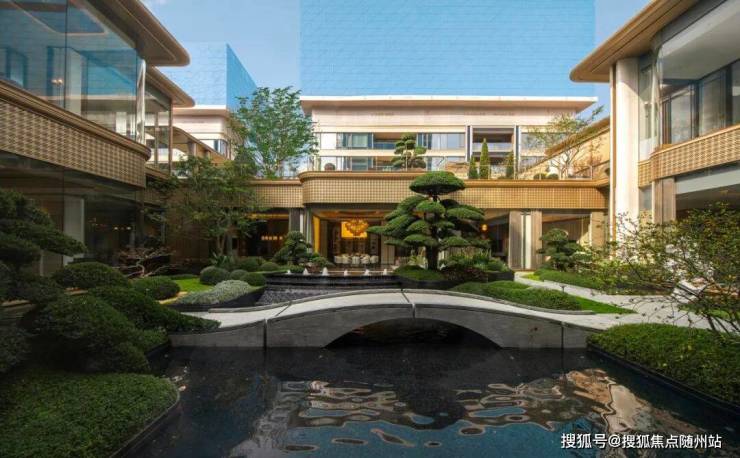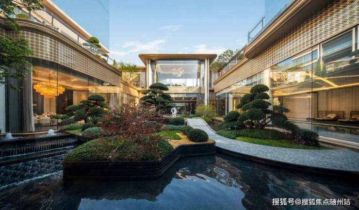 如今在区府核芯,这支团队又开始重新定义标杆级产品。造价约500万的巨型门头,紧接着是结合了京都安缦庭院和江南园林的下沉式庭院,浮桥、步道、水系、游廊等景观小品相互映衬,外围则设计了极其丰富的1600方会所空间,内藏有恒温泳池等11大功能区。