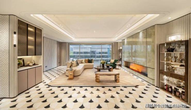 走入室内,是3.3米的超高标准层高,地面多种奢石水刀拼花,六大静音工艺,摩根全屋智系统、嘉格纳6件套等顶级装标等等数之不尽的细节精工。