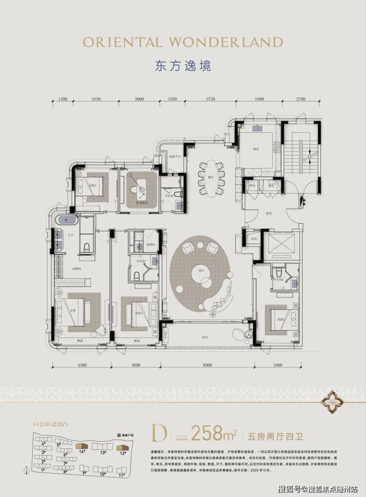 目前放出的高层户型图,建面约218方为5房2厅3卫,建面约238方/258方皆为5房2厅4卫!