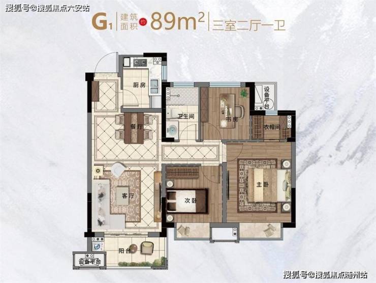 89㎡小三室:适合首置刚需,双卫配置提升私密性,阳台可拓展为儿童活动区或储物空间;