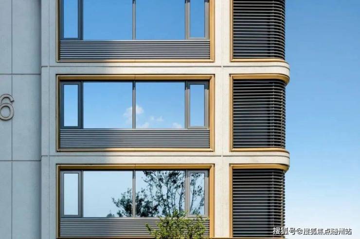 年轻人注重颜值,项目整体采用金色铝板(南立面)+玻璃+金属格栅+涂料的建筑立面,流畅的弧形转角,以滨江定制款的“华贵金”勾勒,熠熠生辉。