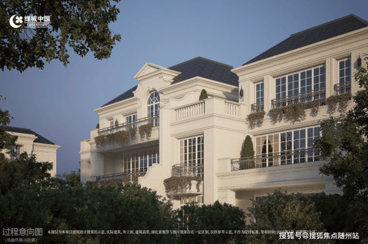 其中,法式合院以香奈儿老佛爷摩洛哥南法海岛别墅为灵感,在设计上沿袭法式建筑的经典型制,并融入当代审美,规划更大窗墙比、定制建筑立面等,造诣契合当下居住体验的同时,迭新绿城法式的浪漫表情。