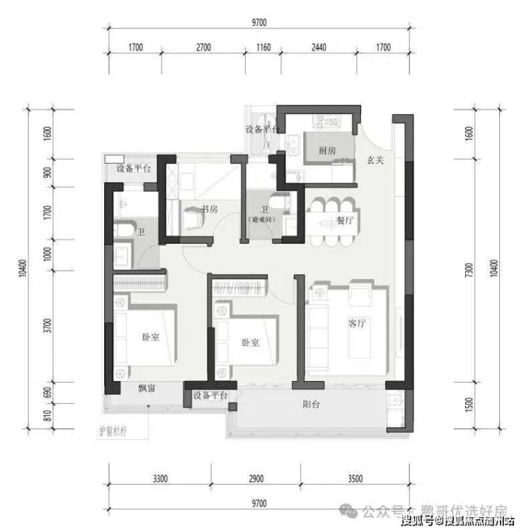 E户型 | 命名:Mate 3 promax建筑面积约117㎡ 3室2厅2卫