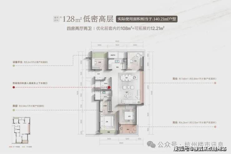 🌟小高层108方(4房2厅2卫)-139方(4房2厅3卫),实得率约96%