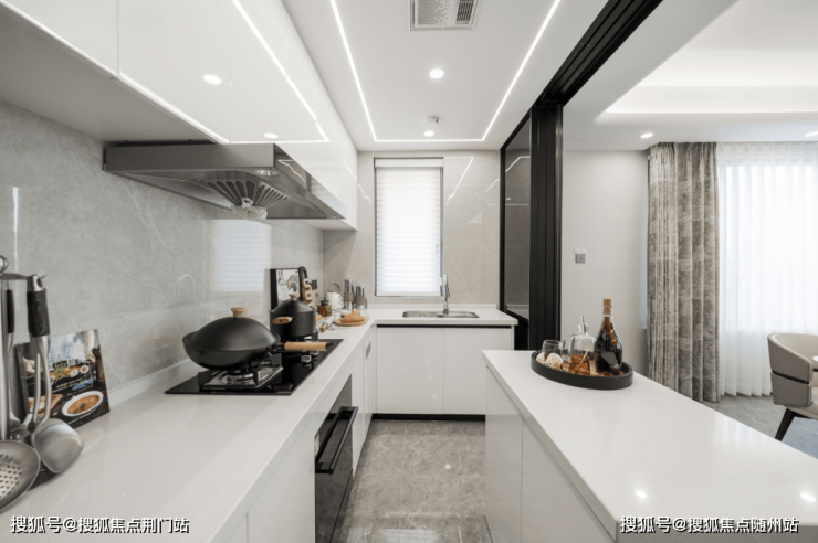 中西双厨设计: L型大尺度 厨房,搭配独立岛台,可实现中西双厨自由切换,无论是 中餐的烟火气,还是西餐的精致感,都可以轻松兼得,让日常生活拥有更多选择。