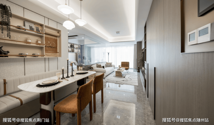 LDKB 一体化: 半开放式厨房设计,取 / 洗 / 切 / 炒 / 盛动线流畅,多人协作也不拥挤;厨房与餐客厅无界相融,备餐时能随时照看客厅玩闹的孩子,家人围坐 6人餐桌用餐时可同步追剧,打破传统户型的功能割裂。