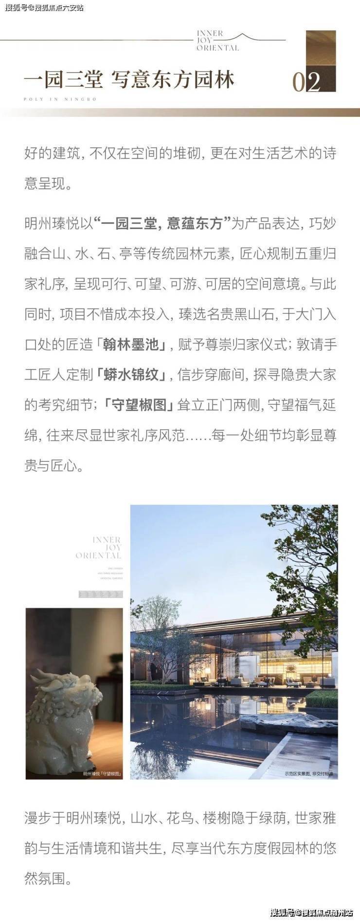 保利发展浙江公司深研天一阁“堂前—前院—庭院—连廊—后院”的空间结构,化为明州瑧悦府“诗礼门堂、泗水归堂,礼仪连廊、山水隐园、厅堂礼院、度假泳池”五进归家礼序,串联一园三堂,呈现端庄持稳的世家诗礼门庭。🔻售楼热线:☎ 400 832 8823「售楼处」☎〢网上售楼中心〢🔻