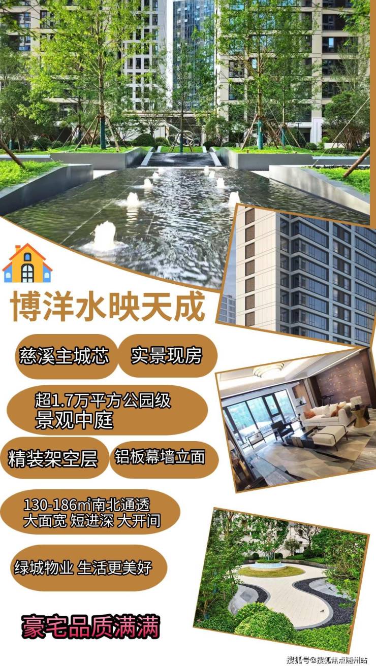 博洋水映天成:慈溪主城芯实景现房,醇熟商圈环伺,约130-186㎡南北通透奢阔大宅,单价17000元/㎡起,绿城物业护航