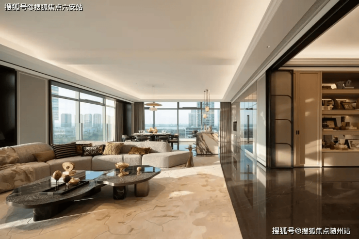 3.6米全景推拉窗,将城市天际线引入日常,震撼级“中央会客厅”,塔尖圈层的社交主场,全套房式设计,尊崇生活仪式感