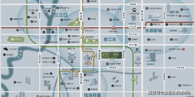 1站印象城,万象汇、钱湖天地等地标商圈围合,宋诏桥小学(规划分校)、李惠利中学等环伺,一线滨河盛景等配套荣聚,繁静皆相宜。