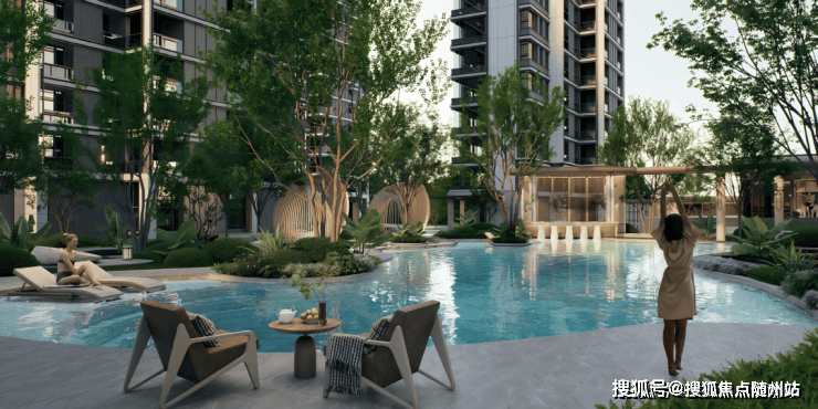 正是绿城首度落地的3.0泳池综合体。这一空间位于社区核心,归家必经之路上,融合中心泳池、林下客厅、卡座与廊架,成为串联生活场景的视觉与功能中心。与立体水院动静相衬,约34米泳池深浅分区,满足孩童嬉戏与成人畅游。池畔一侧为健身区,一侧为书吧,运动挥汗与静心阅读和谐并存,让身心各得其所。