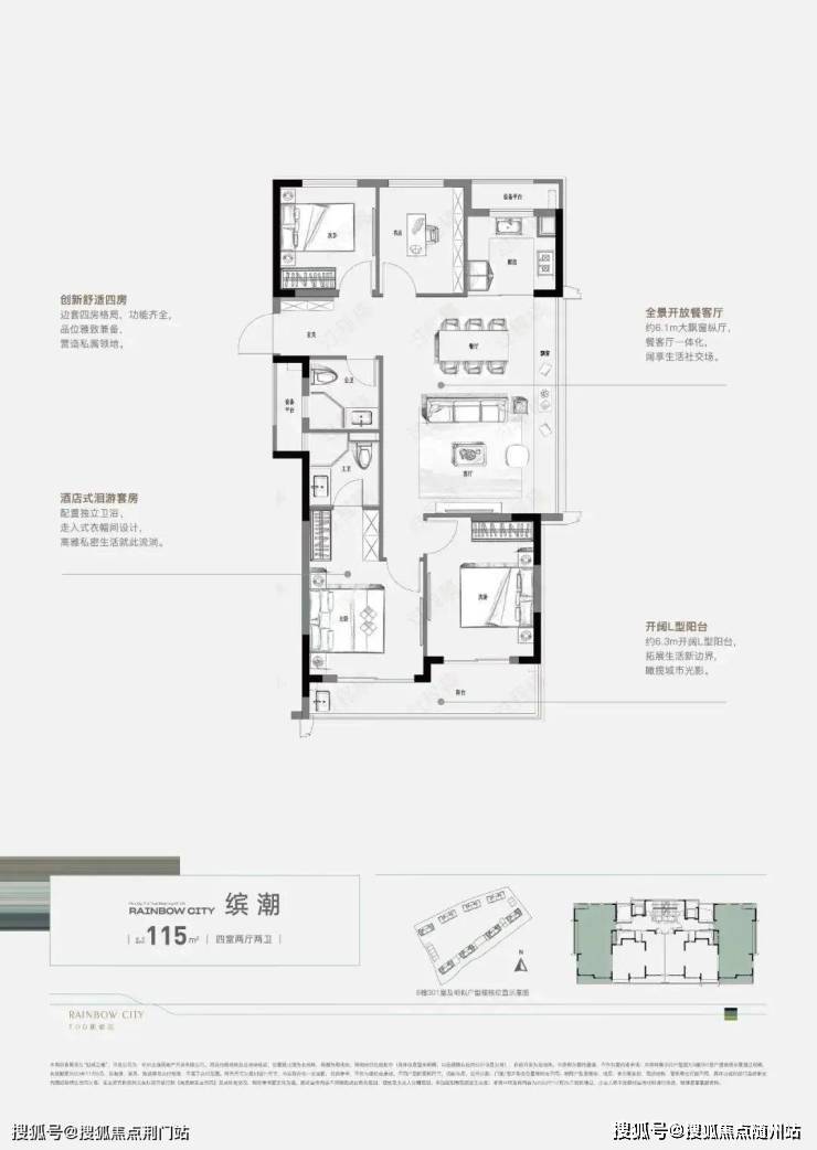 建面约115㎡的四房户型,轻松get二胎家庭或三代同堂的需求。
