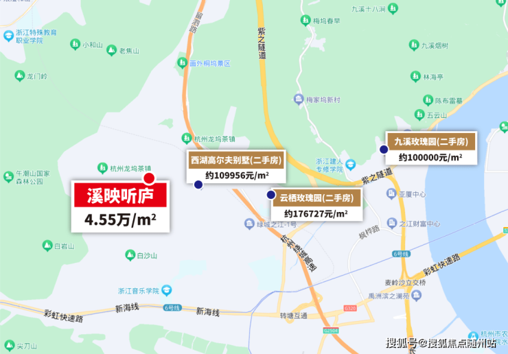 紫之隧道、之江路等主干道连通全城,在建地铁12号线龙坞站和叶埠桥站双站点距项目仅数百米,3站直达未来科技城。
