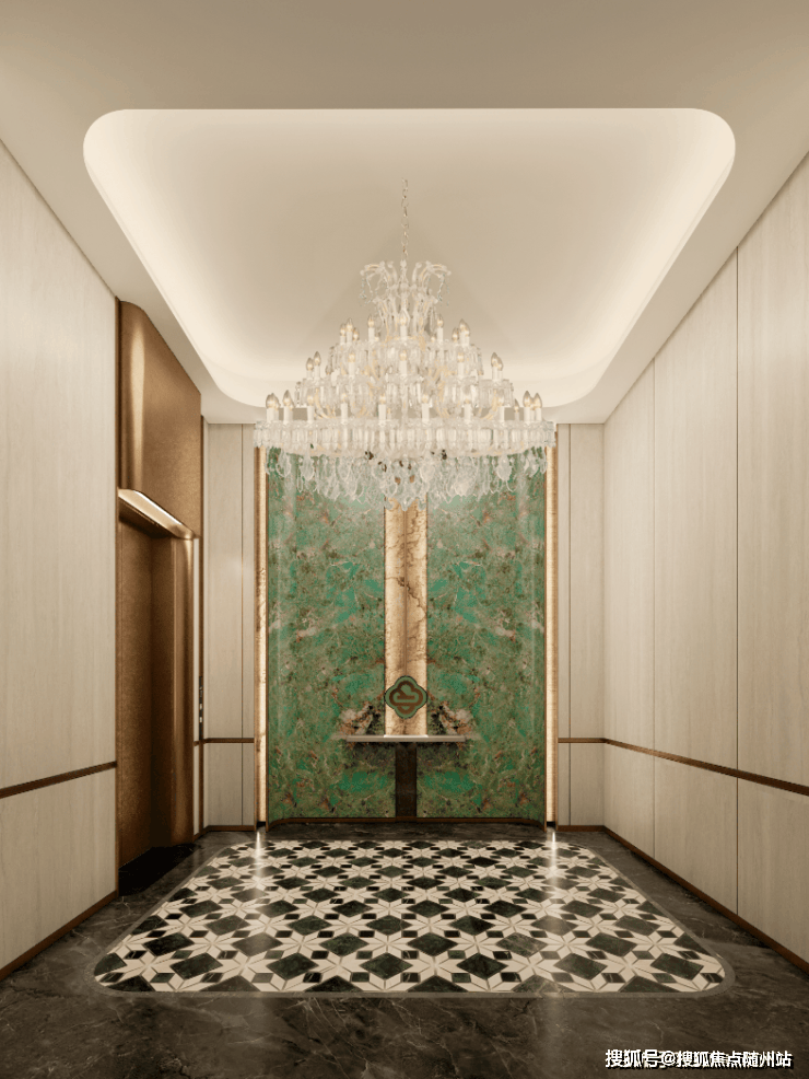 每一户还标配原厂装修的日立电梯。就连车库电梯厅也进行了豪华精装,精致的大理石拼花地面,整面墙的奢石铺装,金属质感的电梯门,每一户都拥有奢华独立的归家空间。