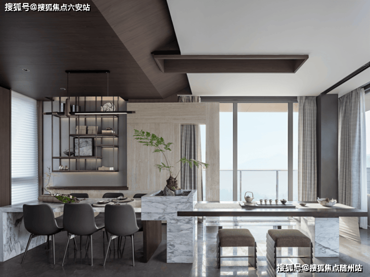 独立前院和礼仪玄关入户,一出电梯门,只见餐客厅和书房一字排开,面宽达约19.8米。一个环绕式超级露台,长度达约30米!设计糅合山居生活与当代设计风格,以静谧优雅的风格诠释国际现代奢华的诗性与意韵。