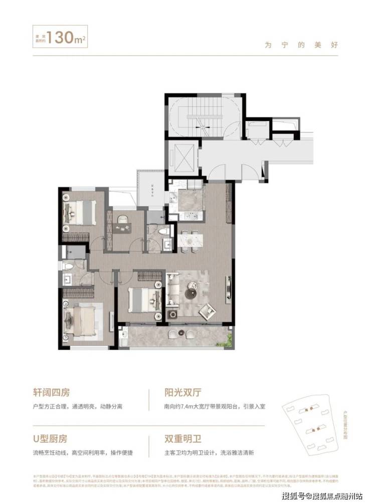 • 功能:主卧套房+独立家政间,U型厨房预留双开门冰箱位。