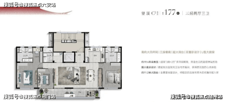 上叠C3户型“花源”建面约177㎡,正如名字一般,四季如花盛绽:一层南向约5.6米大阳台,北向超6米大进深露台;二层南向约5.6米大阳台,北向约3.65米大进深露台;顶层奢配近100平米超大露台,三重露台格局,赋予空间不同层次感的景观奢享体验,大手笔珍贵难觅。
