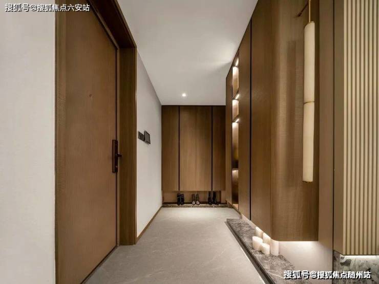 为了实现尊贵雅致的归家仪式感,打造“五境归家”动线,约37米延展面的府院式大门、约4米挑檐星空顶及尊贵酒店式落客和parda绿奢石,勾勒出每一步皆静奢的归家质感。而在入户电梯厅,经典纹样的瓷砖拼花,搭配雪山银狐岩板和精美壁灯,让业主的每次回家都被温馨氛围包裹。
