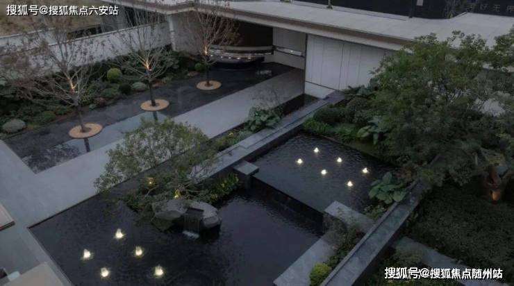 绿韵盎然,流波将月,水引星来,通过水带来的视听触感,营造独特的视觉记忆和趣味灵动的空间体验,一眼一景,揽满庭芳华。