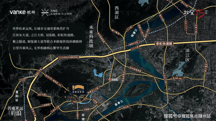 交通便利:通过彩虹快速路、紫之隧道等20分钟直达滨江、城西,半小时覆盖西湖、钱江新城。