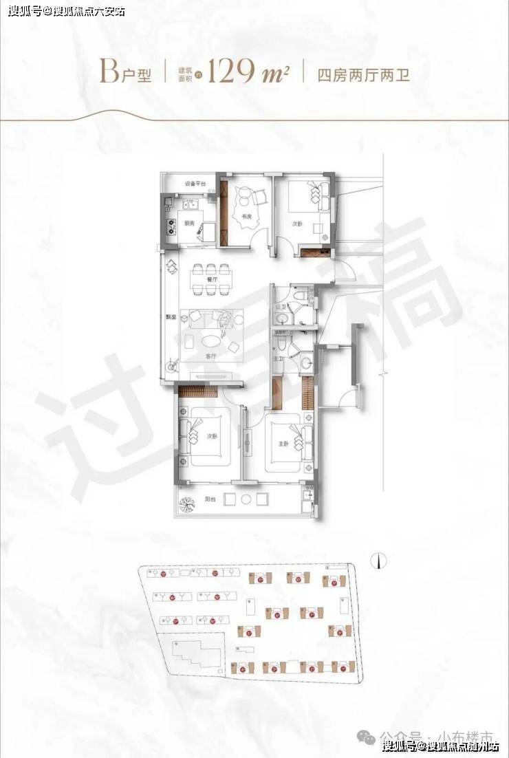 129㎡舒适四房:四开间朝南 + 12 米南向面宽,独立家政间贴心配置