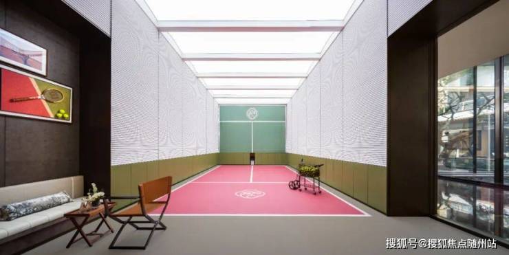 洋房高层区也有独立的建面约2200㎡独立会所,恒温泳池、观景健身房、高定私宴厅、网球训练室等一应俱全。
