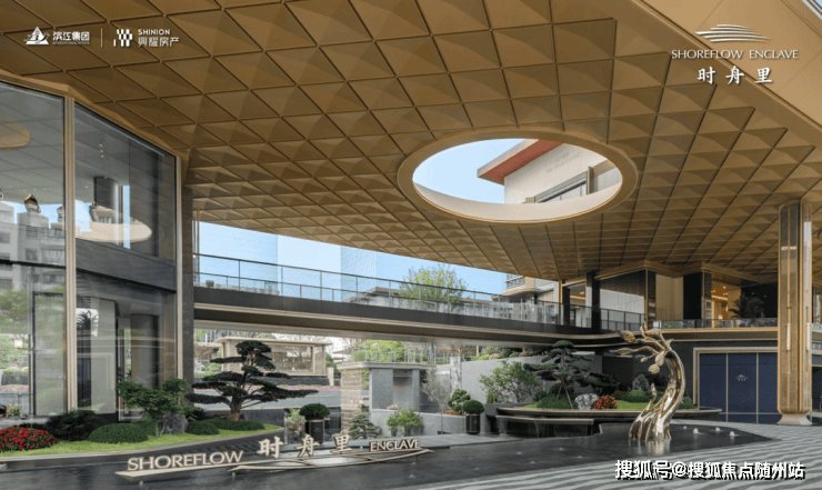 外立面竖向古铜色金属和横向香槟金金属线条勾勒出向上升腾、高飞展翅的意境,在一纵一横中谱写中轴之上的时代乐章。南向大面积玻璃窗,转角圆弧玻璃,将视野270°极致打开,将中轴繁华与湿地清幽尽收眼底。