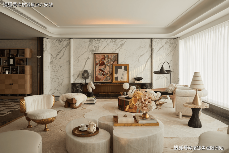 对于材料与色彩有精妙的控制力。在T-ONE潮博东区的建筑面积约365平米户型中,他对材料与色彩的这种精妙控制力,给室内空间带来了奢侈品级的辉光。