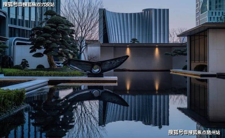 此外,项目入口采用“引水入园”的手法,打造了大平层市场少有的围合式景观,通过打造一条蜿蜒的游廊,让游者仿若置身于一副会流动的山水画卷之间。