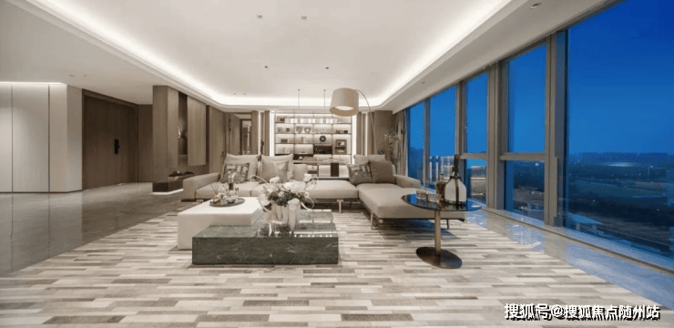 为了最大化这样的景观优势,雲玺南向外立面的玻璃面占比达到了近90%。置身于雲玺的样板间内,三面自然采光,巨大的空间内几乎无一处暗角,每一面都是不同的城市风景。