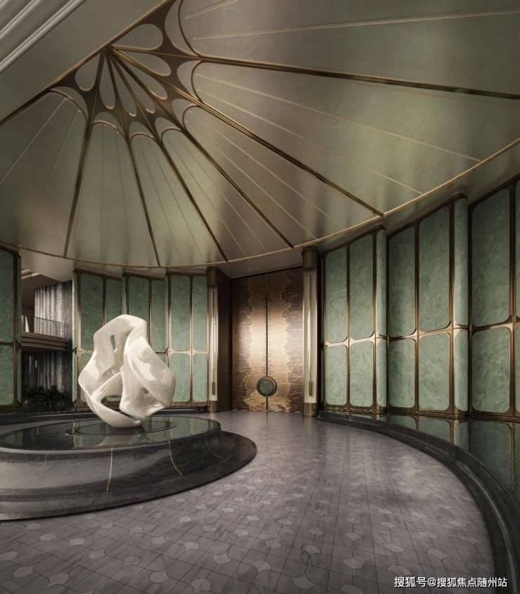 项目作为保利天字系,无疑是金字塔尖的豪宅产品,仅大门的设计就颠覆传统:扇形+巨大铜门,辅以青绿奢石,不愧是七度蝉联“全国十大顶豪”称号的保利天系产品。