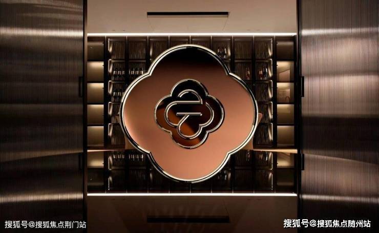 建筑外立面是约2.5厘米香槟金全维拉丝铝板,搭配玻璃幕墙和铂金钻奢石。
