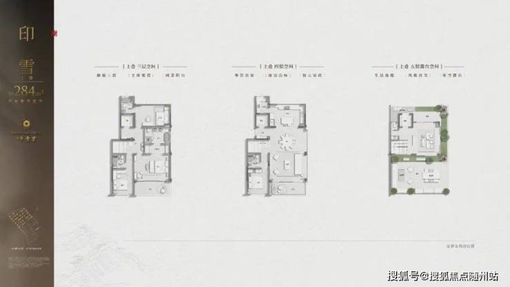 上叠拥有首层北入户庭院、约2.1米深阔景阳台及超大尺度屋顶花园,纵享立体三重庭园。全套房设计礼遇家庭各成员生活隐私。
