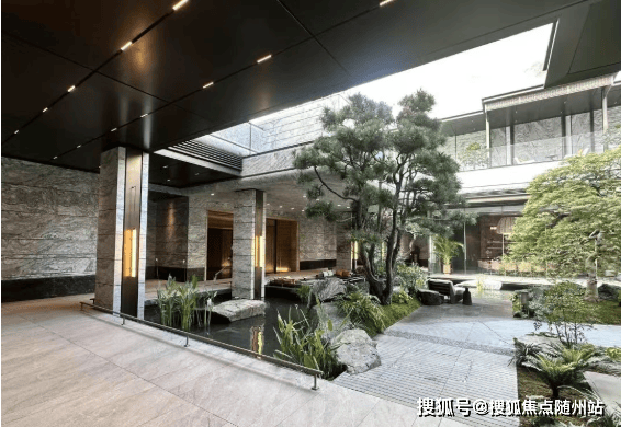 茶室:整面玻璃落地,室外水系景观庭院,喝茶静坐很雅致。