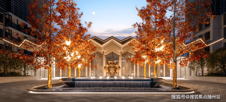 首先迎面的就是一个造型奢华的水系艺术喷泉景观,在加上挑高非常夸张的金属巨幕架空层,结合柔和的光影,给人的感觉就像5星级酒店,让您每一步归家,都仿若五星酒店下榻,尊崇感油然而生。