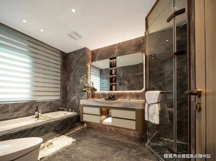 堪比星级酒店总统套房的主卧,带独立卫浴间,配上双台盆+大浴缸,以及走入式衣帽间,既是太太的更衣室,也是先生的名表收纳室。