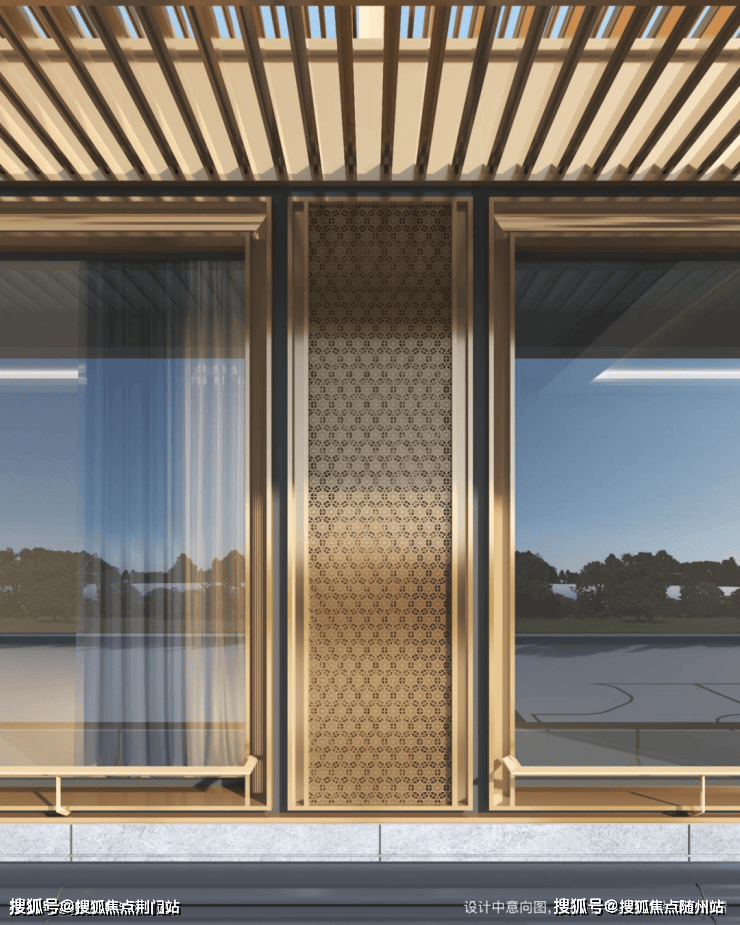 建筑立面采用了石材、大面积玻璃为主要材质;细节之处设计师搭配白色石材和鎏金线条,借鉴蜀山先照寺的重檐叠韵,独创镂空金属格栅,赋予立面吉祥如意,让建筑既是居所,亦是可传世的艺术珍藏。
